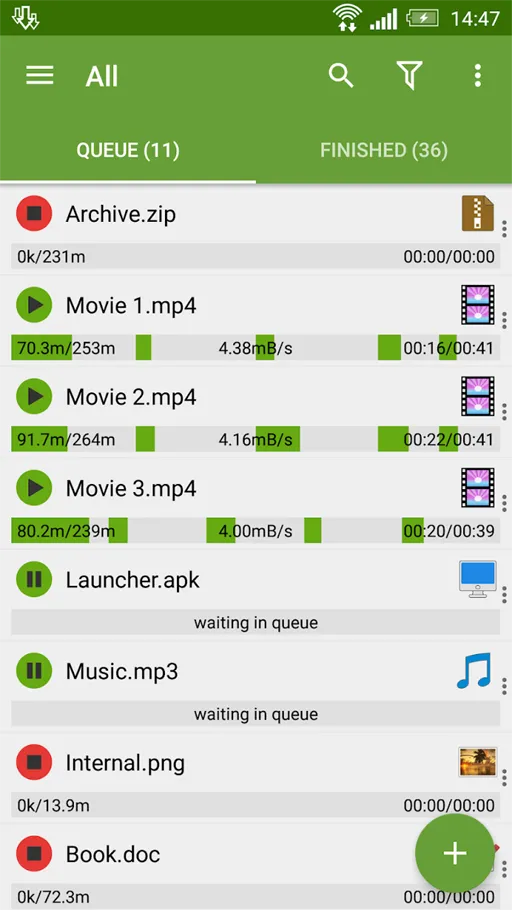 تتوفر أيضا خدمة التنزيل التلقائي في “Advanced Download Manager مهكر” داخر اصدار الذي يجعل المستخدم لما يواجه مشكلة في تحميل الملفات المكررة, وكل هذه التنزيلات تستطيع متابعتها من خلال الإشعار الذي يظهر لك في خلفية الشاشة.