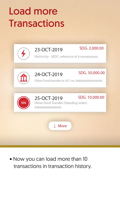 - إستعراض أسعار الصرف : كل دولة لها عملة رسمية للتعامل والبنوك تواجدت لأهداف كثيرة منها تسهيل عملية التحويل بين العملات الخاصة بالبلاد, ومن الخصائص الموجودة في التطبيق أنه يعرض أسعار الصرف والتبديل بين العملات والعملة الأساسية في دولة السودان.