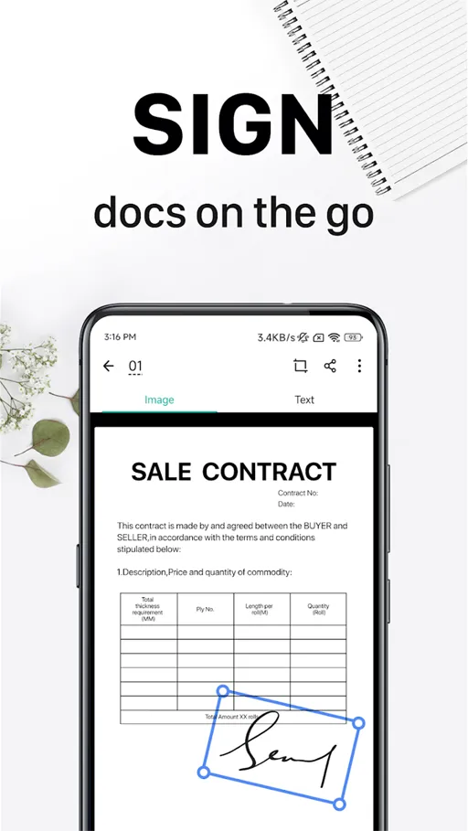 - إضافة التوقيعات : من العمليات التي يمكنك الإستمتاع بها هى عملية إضافة التوقيعات على المستندات التي تقوم بمسحها, وهذه التوقيعات يتم إضافتها للتطبيق بواسطة مسح التوقيع من على أي ورقة, ويعتمد تطبيق كام سكانر مهكر أيضا في هذه العملية على الذكاء الإصطناعي.