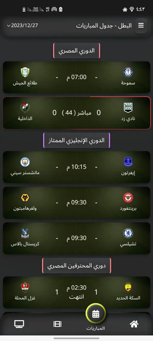 عرض جدول المباريات بعد تحميل تطبيق البطل Elbatal Apk مهكر بدون اعلانات