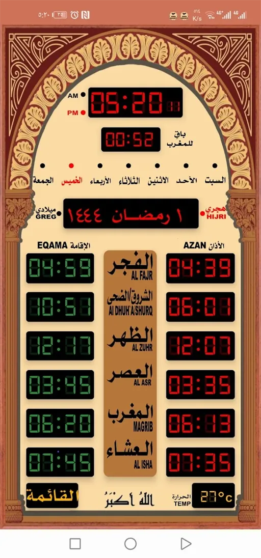 مواقيت الصلاة والمؤذن الإلكتروني بعد تنزيل برنامج Electronic Muezzin للاندرويد مجانا