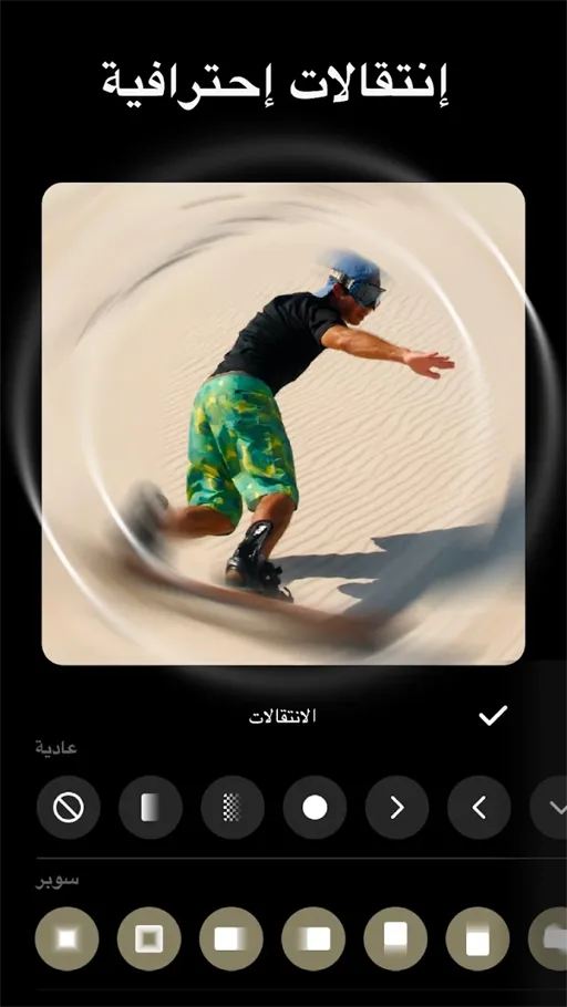 ومن الأمور الرائعة التي يوفر تحميل برنامج InShot Pro هي التأثيرات الإنتقالية, يوفر التطبيق عدد ضخم من الإنتقالات المميزة والاحترافية لبدء الفيديو بها أو للتبديل بين الصور وبعضها داخل الفيديو أو لجعلها في نهاية المشروع, الإنتقالات مميزة ويمكنك تحديد الوقت وموقع ظهورها بجانب تحديد سرعتها ومدى قوتها على الفيديو نفسه, ومع التحديث الكثير لبرنامج InShot مهكر للاندرويد بشكل مستمر نجد موارد جديدة كلياً ومنها بالطبع إنتقالات كثيرة جديدة لذلك نجد أن تحميل برنامج InShot مهكر حافظ على شهرته وقوته بين التطبيقات المنافسة على مدار السنوات, وقبل تحديد أو إستخدام أي تأثير إنتقالي يمكنك المعاينة على شكله النهائي بسهولة وبشكل مميز.