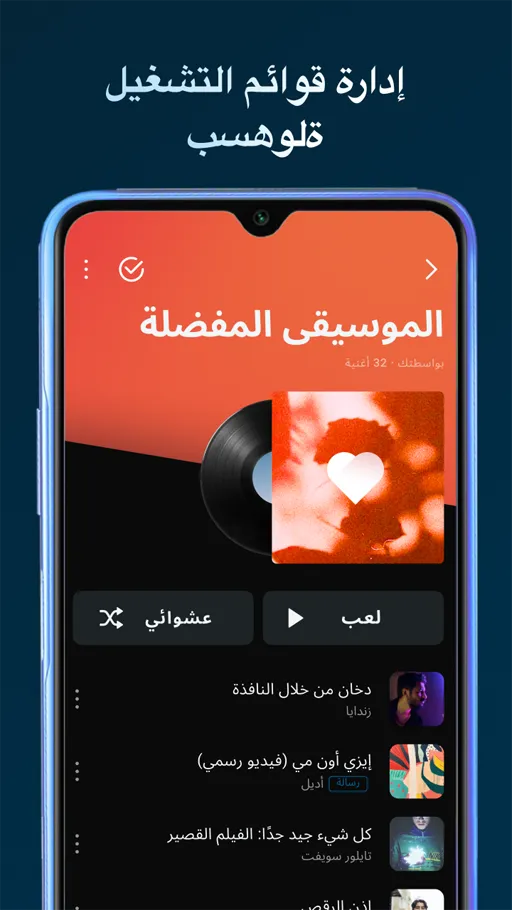 قد يكون لديك المئات من الأغاني المتنوعة ولكن في بعض الأحيان تكون بحاجة لسماع بعض الأغاني بعينها, وتلك الخدمة يواجهة بها المستخدم مشكلة لأنه في بعض التطبيقات الأخرى كان يضطر لتشغيل الأغاني بشكل فردي, لكن اليوم ومع “تنزيل برنامج Lark Player مهكر” لن تواجه تلك المشكلة مرة أخرى وذلك لأن بهذا التطبيق تتوفر خدمة قوائم التي يمكن بواسطتها إنشاء قائمة تشغيل وتعمل على إضافة بها جميع الأغاني المراد لكي تقوم ببدء تلك القائمة وبالتالي لا تستمع سوى لهذه الأغاني التي قمت بإضافتها لتلك القائمة ولا يتم تشغيل أي أغنية أخرى لا تتوفر بتلك القائمة.