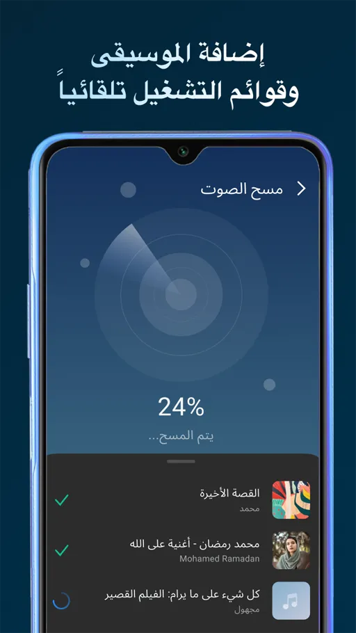 - محرك البحث : كما ذكرنا أن يظهر به جميع الملفات الصوتية والفيديوهات المتوفرة بهاتفك, بالتالي من الصعب العثور على أي ملف بصورة يدوية, لذلك حرص المطور على توفير محرك بحث تستطيع بواسطته البحث عن أي ملفات صوتية بسهولة.
