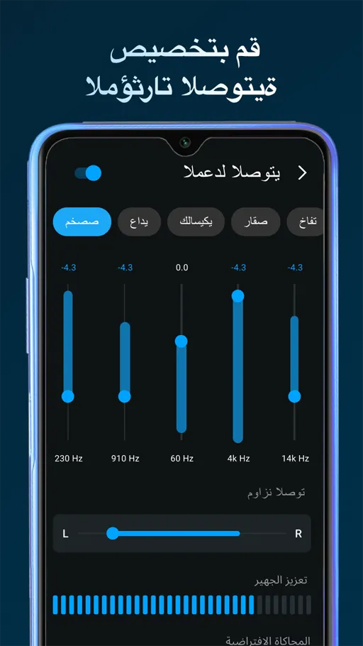- تعديل الصوت : من المزايا المتوفر بهذا المشغل أنه يتيح لك تعديل الصوت الخاص بأي موسيقى مما يمكنك التخلص من أي أصوات جانبية في مشغل موسيقى الخاصة بك بواسطة تلك الخدمة.