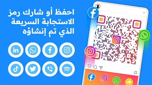 - المشاركة : يوفر تطبيق WhatsApp QR Code Generator مهكر أيضا خدمة المشاركة التي تجعلك تستطيع مشاركة هذه الرموز مع الأصدقاء بواسطة وسائل التواصل الاجتماعي المتنوعة من التطبيق بشكل مباشر بالتالي أنت لست بحاجة لحفظ الرمز بالهاتف لكي تستطيع المشاركة.