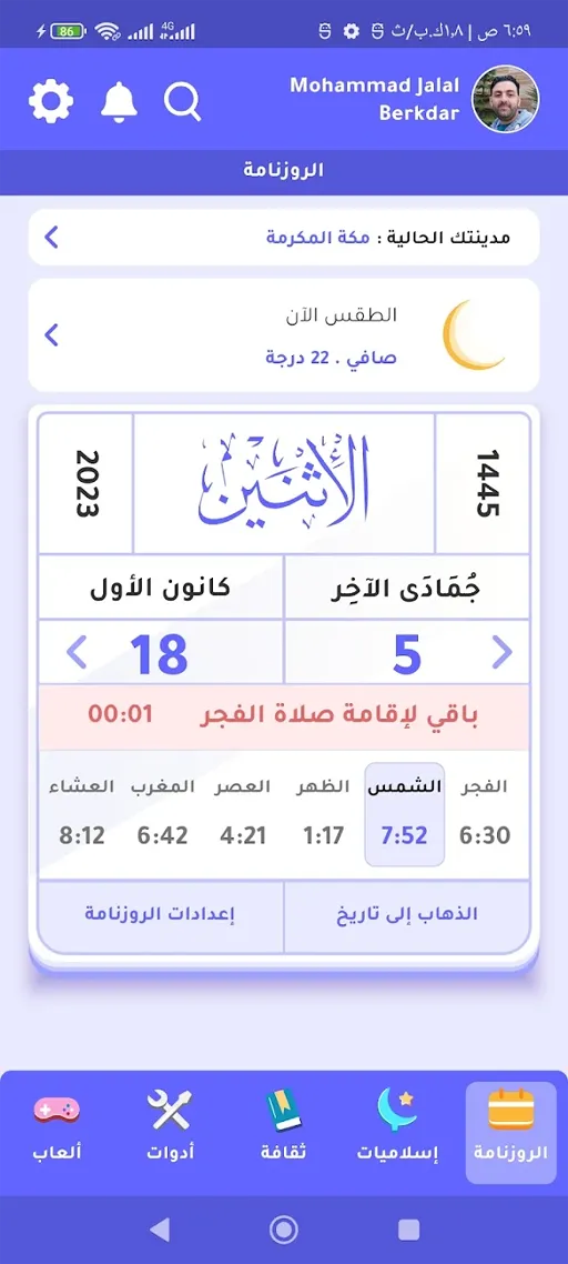 تفاصيل قسم الإسلاميات بعد تنزيل الروزنامة أوقات الصلاة القرآن الكريم بدون نت مجانا
