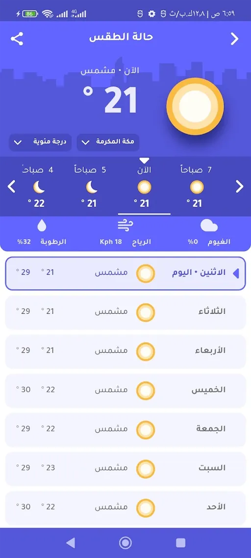 - حالة الطقس : توفر هذه الأداة تحديثات دقيقة ومباشرة عن حالة الطقس في الموقع الجغرافي الخاص بك وتشتمل المعلومات درجة الحرارة والرطوبة وتوقعات الأمطار وسرعة الرياح, والنتائج التي يقدمها تحميل تطبيق الروزنامة Roznama Apk في الطقس دقيقة وتعتمد على مصادر موثوقة وتٌقدم بشكل مجاني تماماً.