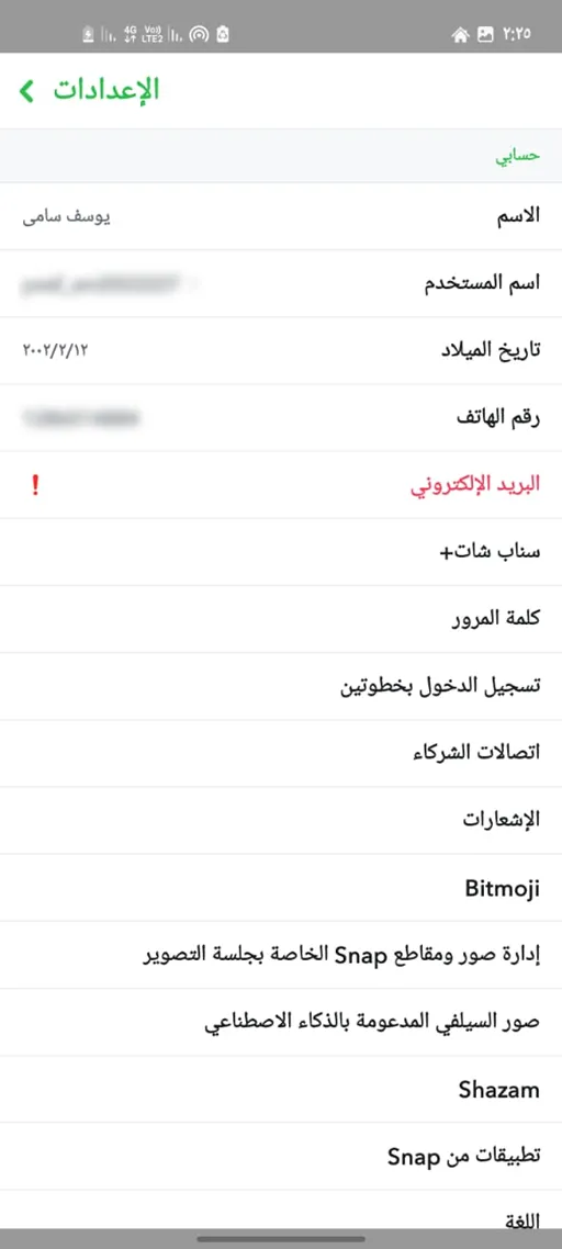 تفاصيل تسجيل الحساب بعد تحميل SnapChat Plus Apk سناب شات مهكر مجانا
