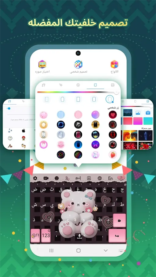 علاوة على كل هذه المميزات التي يحتوي عليها التطبيق تستطيع الاستمتاع بالعديد من الأشكال المتنوعة من اللوحات التي يدعمها, حيث يدعم تطبيق Tamam Arabic Keyboard Apk Mod كيبورد تمام مهكر مجموعة كبيرة من الأشكال والتصميمات المختلفة للوحات المفاتيح, هذه الأشكال تنتمي لفئات عديدة مثل التصميمات الإسلامية و التأثيرات الضوئية والمظاهر المتحركة والرومانسي والرياضي والمزيد من الفئات الأخرى.
