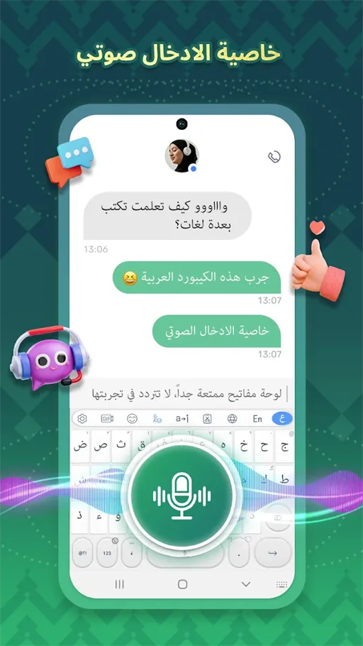 أيضا يمكنك الاستمتاع بعد تحميل كيبورد تمام لوحة مفاتيح عربية مهكرة اخر اصدار بخدمة الإدخال الصوتي التي من خلالها تتمكن من إدخال جميع النصوص المرادة عبر الصوت, حيث أنك تقوم بالنقر مطولا على زر المسافة والبدء في تسجيل الصوت بالعبارات المراد إدخالها لكي يقوم كيبورد تطبيق تمام لوحة المفاتيح العربية بتحويل هذا الكلام إلى نصوص وبالتالي يمكن الاستمتاع بكتابة عدد كبير جدا من العبارات والنصوص بواسطة تطبيق لوحة مفاتيح باللغة العربية تمام مهكر للاندرويد في مدة زمنية قصيرة دون بذل الكثير من الوقت والجهد في الكتابة, حيث أن هذه الخدمة لا تستغرق سوى بضع ثواني فقط.