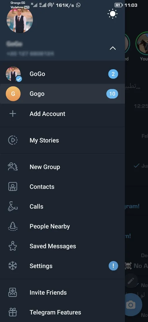 - تعدد الحسابات : من المميزات المتوفرة بعد “تحميل Telegram Premium مهكر” أيضا أنك تستطيع تسجيل به العديد من الحسابات المتنوعة, وبالتالي تستطيع أيضا التبديل بين تلك الحسابات بكل سهولة دون أن تضطر للقيام بالعديد من الخطوات.