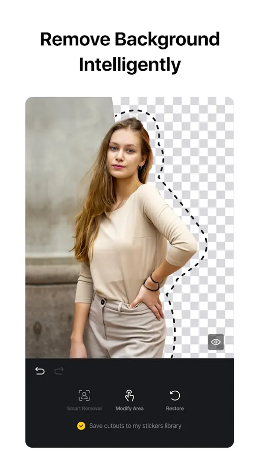 - إمكانية فصل الصور ووضع خلفية لها بإحترافية.