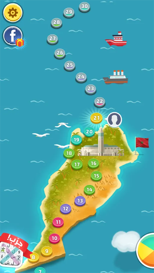 تستطيع بعد تحميل لعبة كلمات كراش مهكرة من ميديا فاير برابط مباشر أيضا الإستمتاع بميزة اللغز اليومي التي من خلالها تتمكن من حل العديد من الألغاز اليومية التي توفر لك إمكانية الحصول على العديد من العملات المعدنية لكي تتمكن من الاستمتاع بها في تخطي الصعوبات, لأن كما ذكرنا هذه العملات المعدنية تعمل على التلميح بالأحرف الخاصة بالكلمات التي تحتاج لتكوينها لكي تستطيع التعرف عليها وتخطي المستوى الذي تقوم باللعب به بسهولة, تلك المستويات التي الظاهر بالخريطة التي يقدمها تحميل Download كلمات كراش Mod Apk تتكون من مجموعة ألوان مختلفة حيث أن كل لون من هذه الألوان تابع لنمط محدد في اللعب.